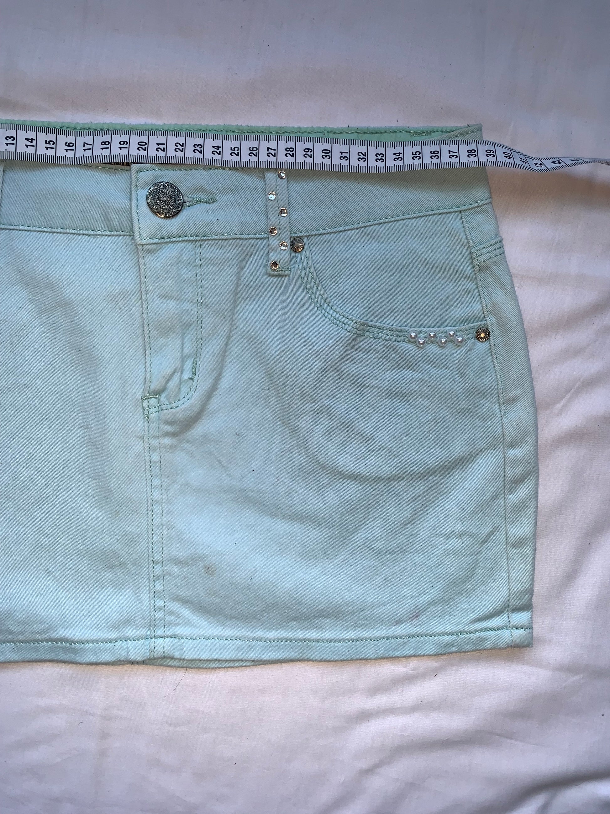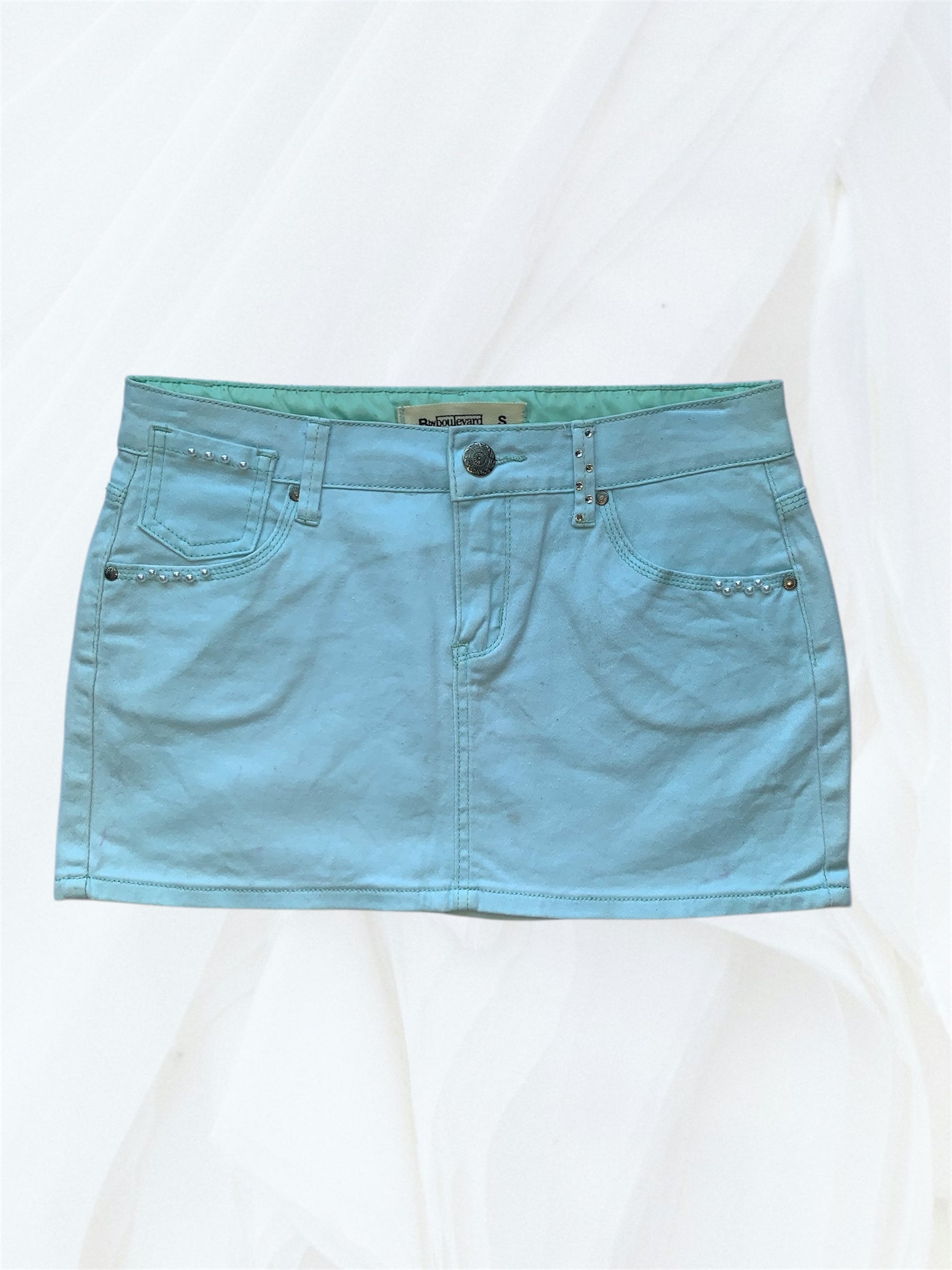 Blue diamente & pearl mini skirt size 10